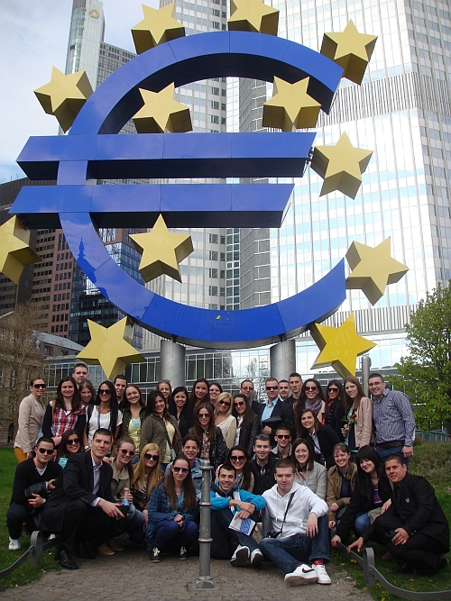 2. Evropska centralna banka, Frankfurt: Verovatno najinteresantniji i najvažniji deo celokupne stručne ekskurzije bio je poseta ovoj najznačajnijoj monetarnoj i finansijskog organizaciji Evropske unije. Impresivan je bio značaj koji je Evropska centralna banka pridala poseti grupe studenata iz Srbije, što se ogleda u visokom rangu zvaničnika ECB koji su održali prezentaciju na temu Evropska centralna banka – uloga, funkcije i odnosi sa Srbijom. Prezenteri su bili g-din Michael Olsen, visoki ekonomista (Principal Economist) ECB, koji je naročito upoznat sa saradnjom ECB sa NBS i Lucia Orszaghova. Ova prezentacija bila je naročito stručna, edukativna i sadržajna. |
